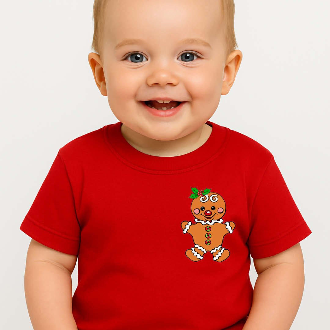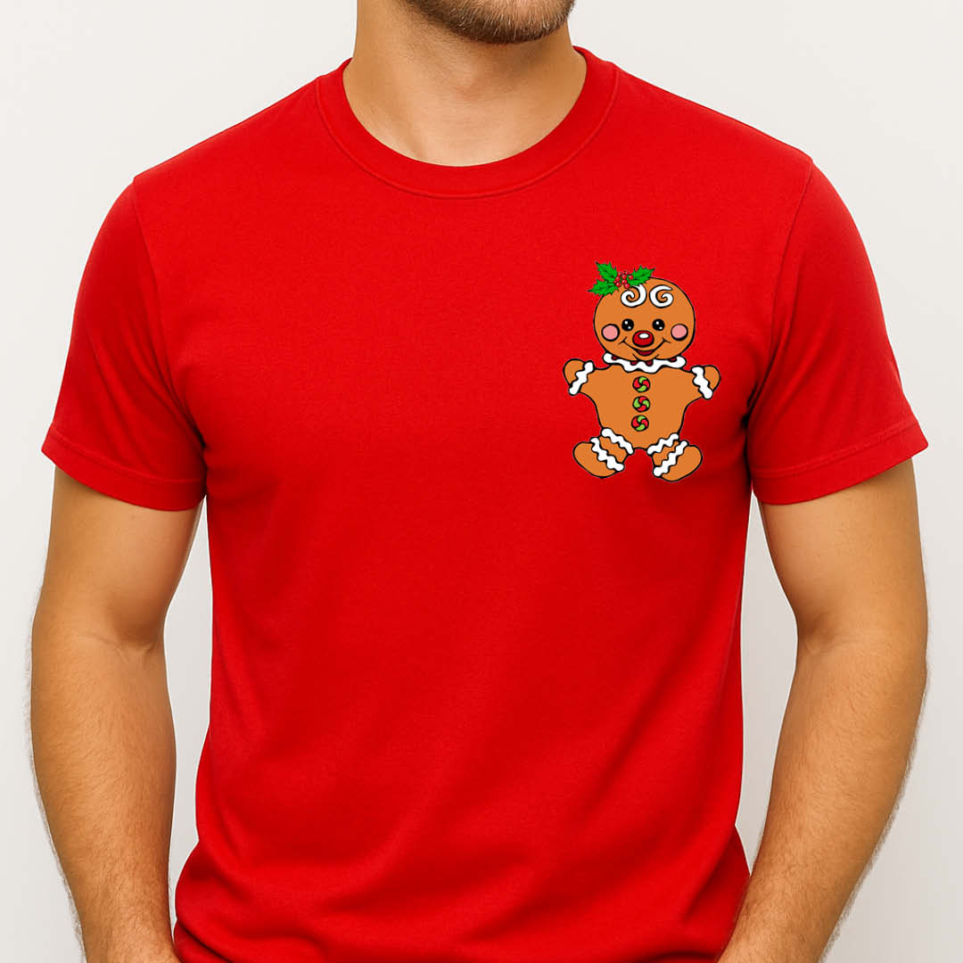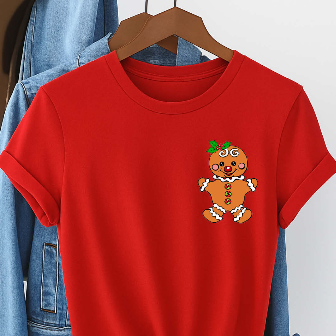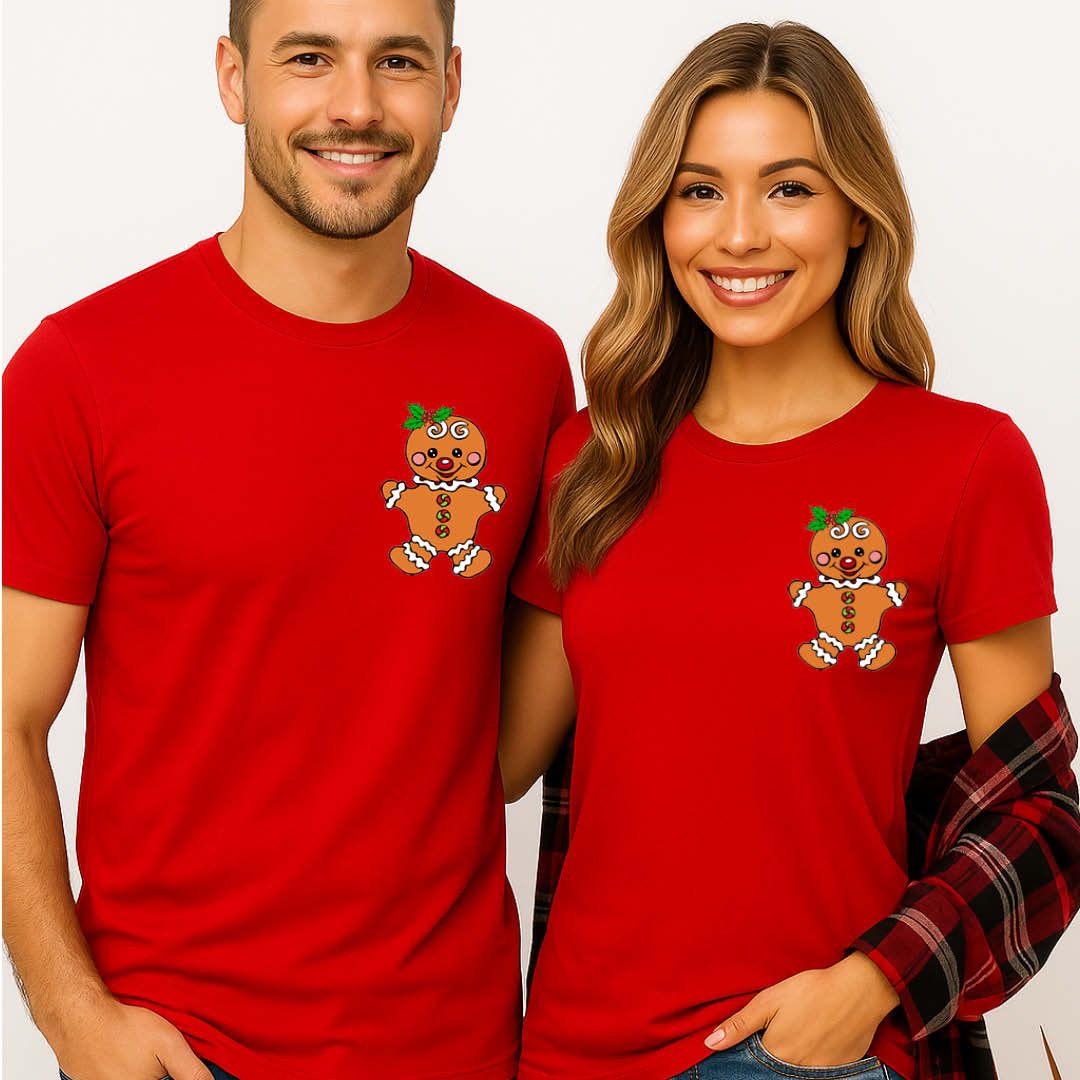 Добавете сладък празничен щрих с нашата червена коледна тениска с джинджифилово човече! 🍪✨ Подходяща за семейства, компании и приятели – от бебета до възрастни. Перфектен избор за коледни фотосесии, фирмени партита и подаръци. Удобна, стилна и заредена с радост за най-вълшебното време от годината! ❤️🎄
