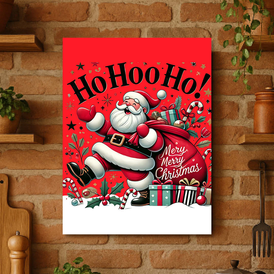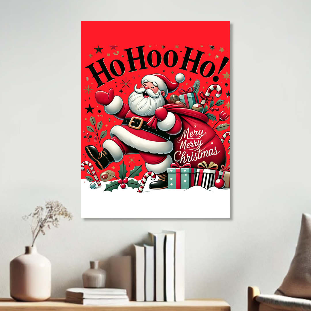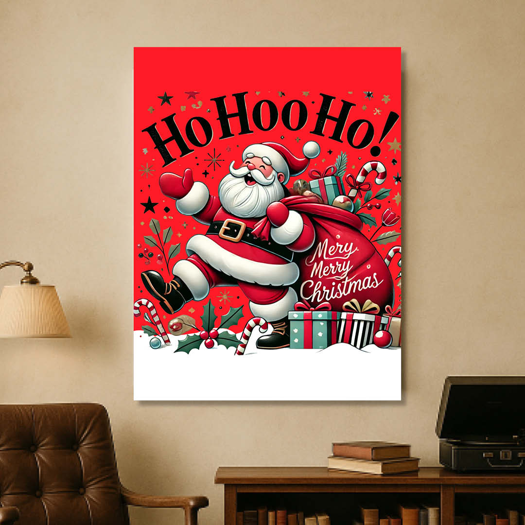 Празничен принт върху опъната канава, който ще донесе усмивки и уют в дома ви! Усмихнатият Дядо Коледа, подаръците и ярките цветове създават истинска коледна магия. Подходящ за декорация или като красив подарък за любим човек. 🎅🎁🎄✨