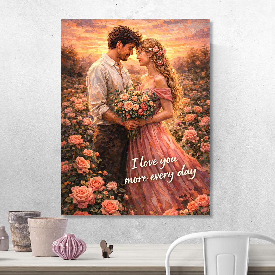 Подходящ избор за подарък за Свети Валентин, годишнина, сватба или просто като нежен жест към любим човек – картина, която говори без думи и остава завинаги.