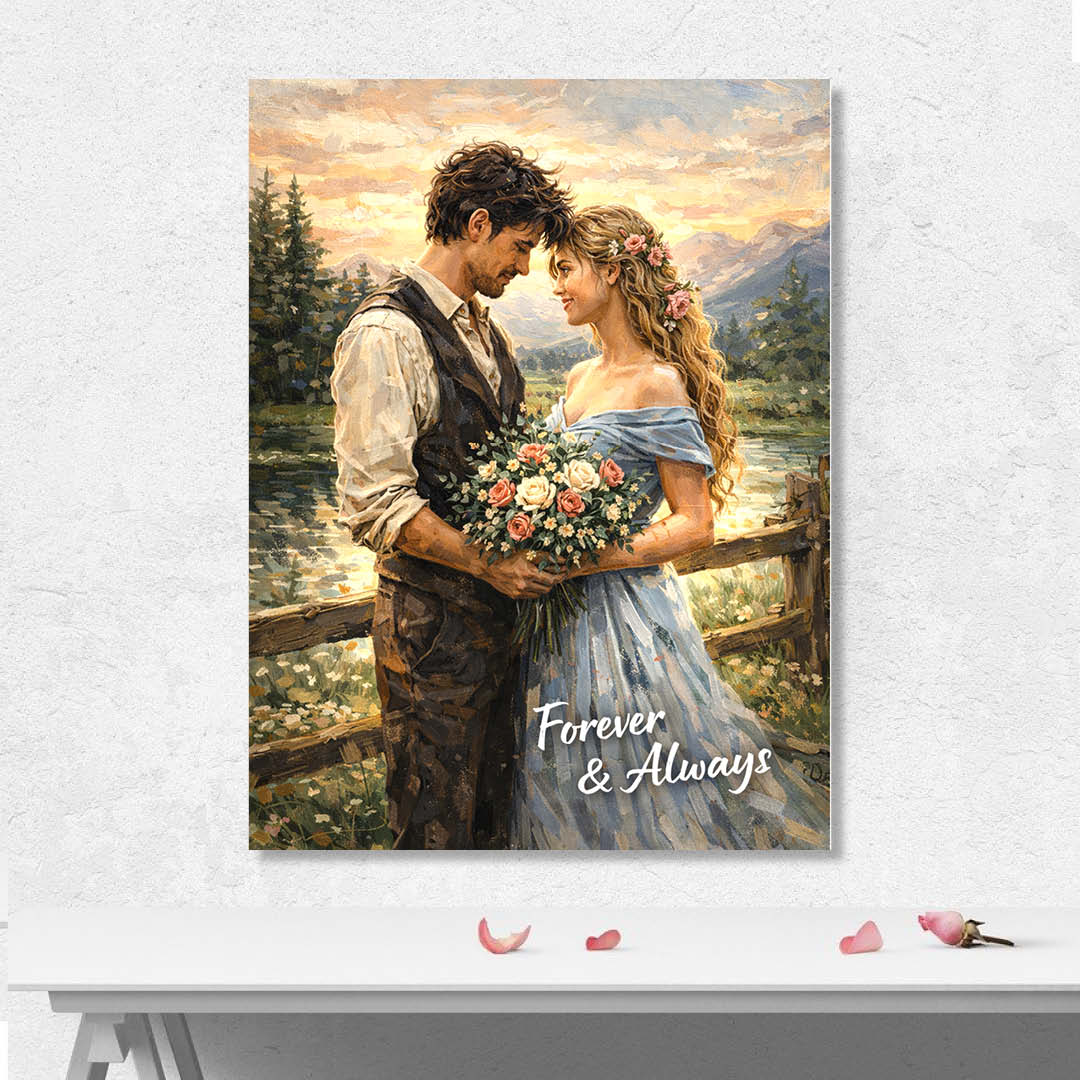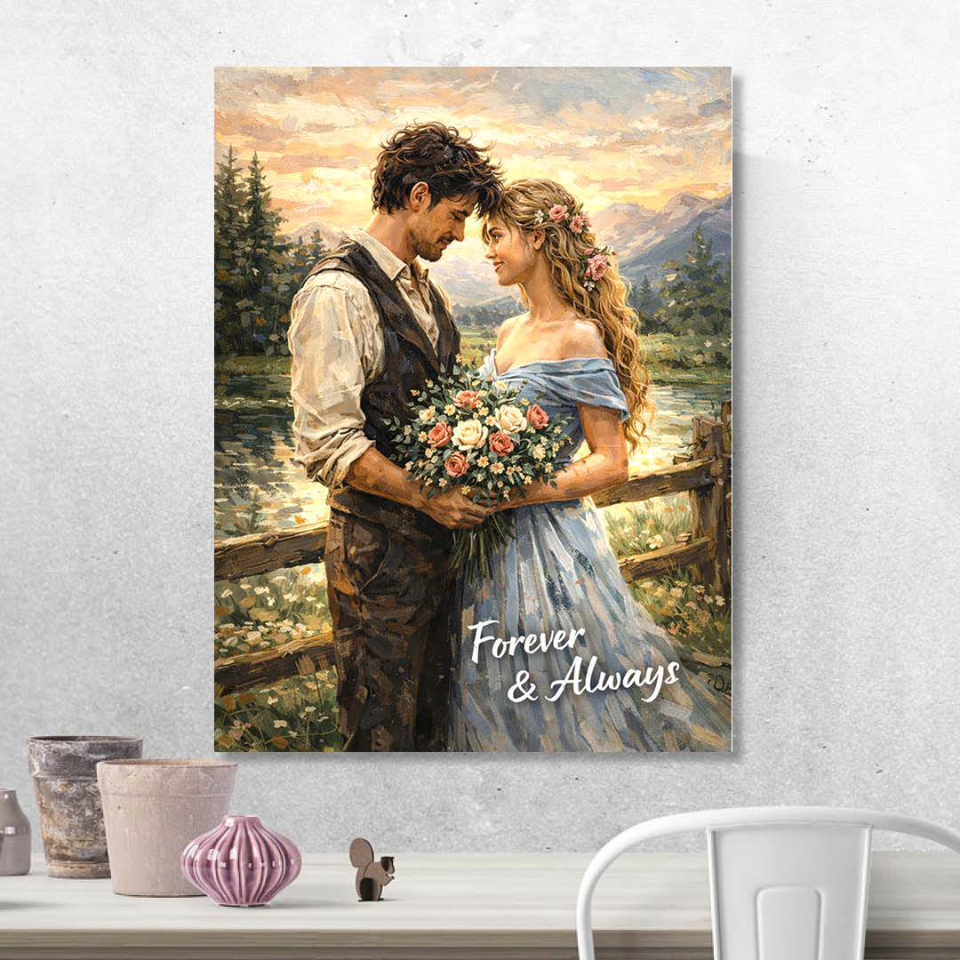 В долната част на картината е изписано посланието Forever & Always, което означава Завинаги и винаги – обещание за любов без срок, без условия и без край. Думите придават дълбочина и превръщат изображението в символ на постоянство, вярност и истинска връзка.