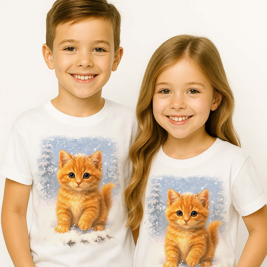 Нашата тениска с рижаво котенце ще ви усмихне още от пръв поглед – пухкаво, сладко и готово за снежни приключения. 🐾❄️